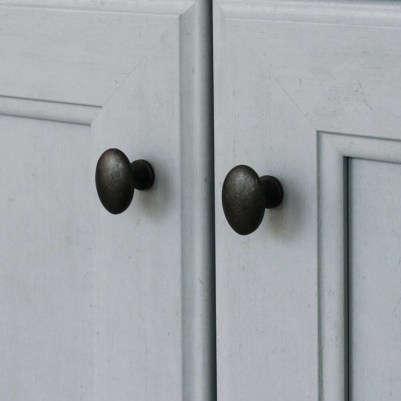 上品さを感じられる楕円状と、ゴールドの地が見える、味のあるブラック仕上げの取っ手です。