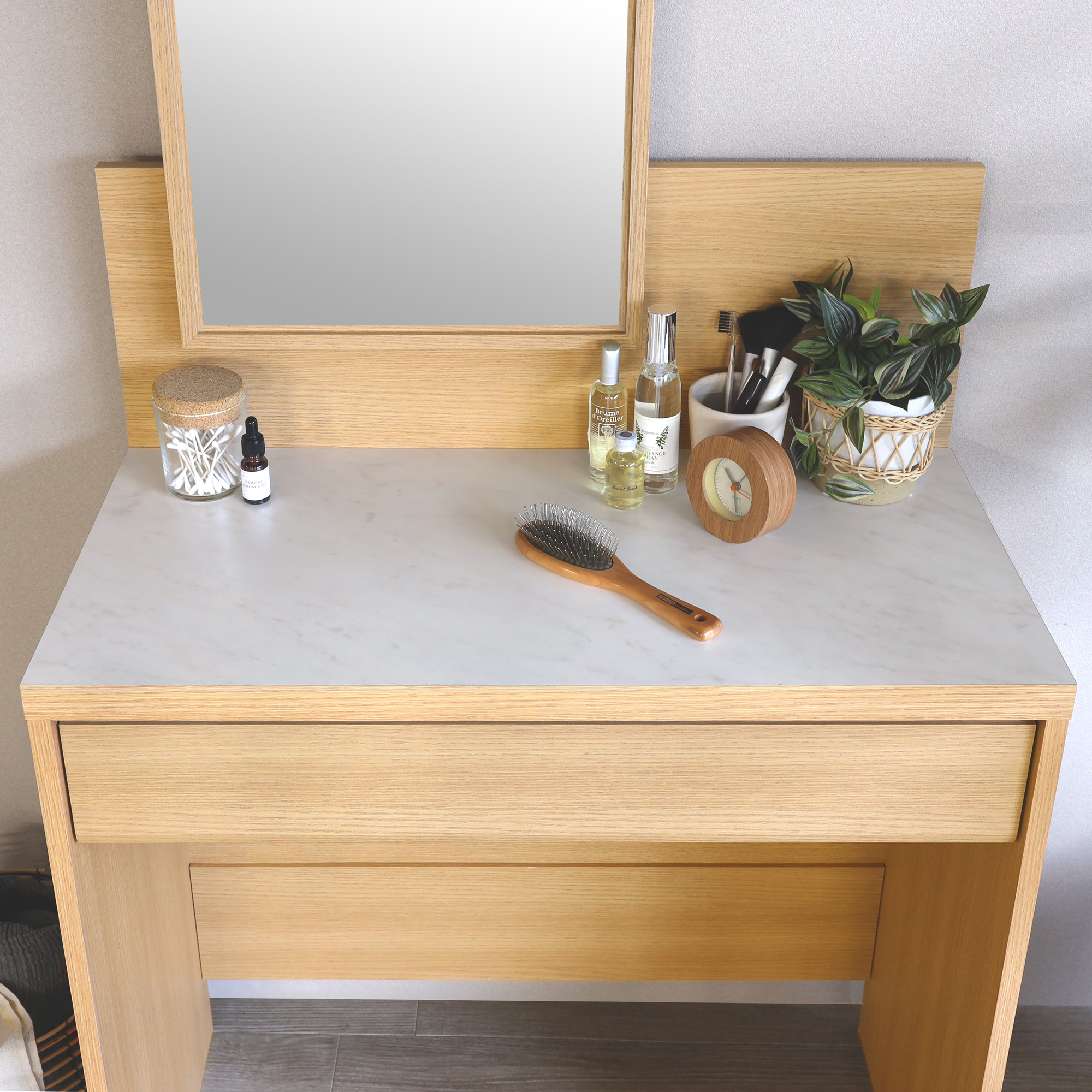 大理石調メラミン天板のドレッサー ナチュラル