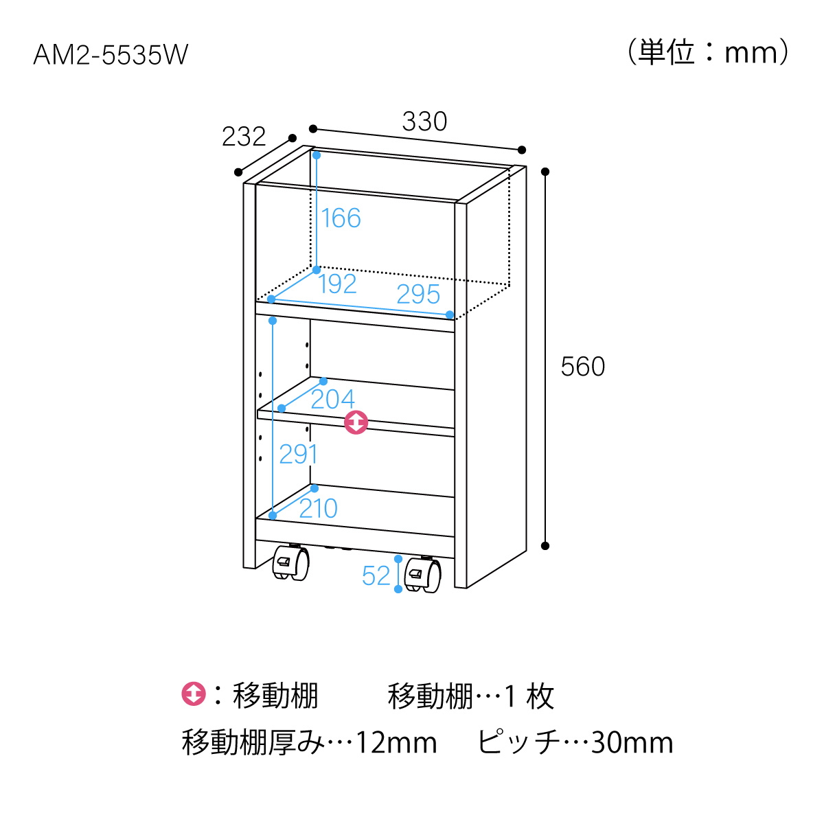 棚板は3cm間隔で高さを調節できる移動棚です。
