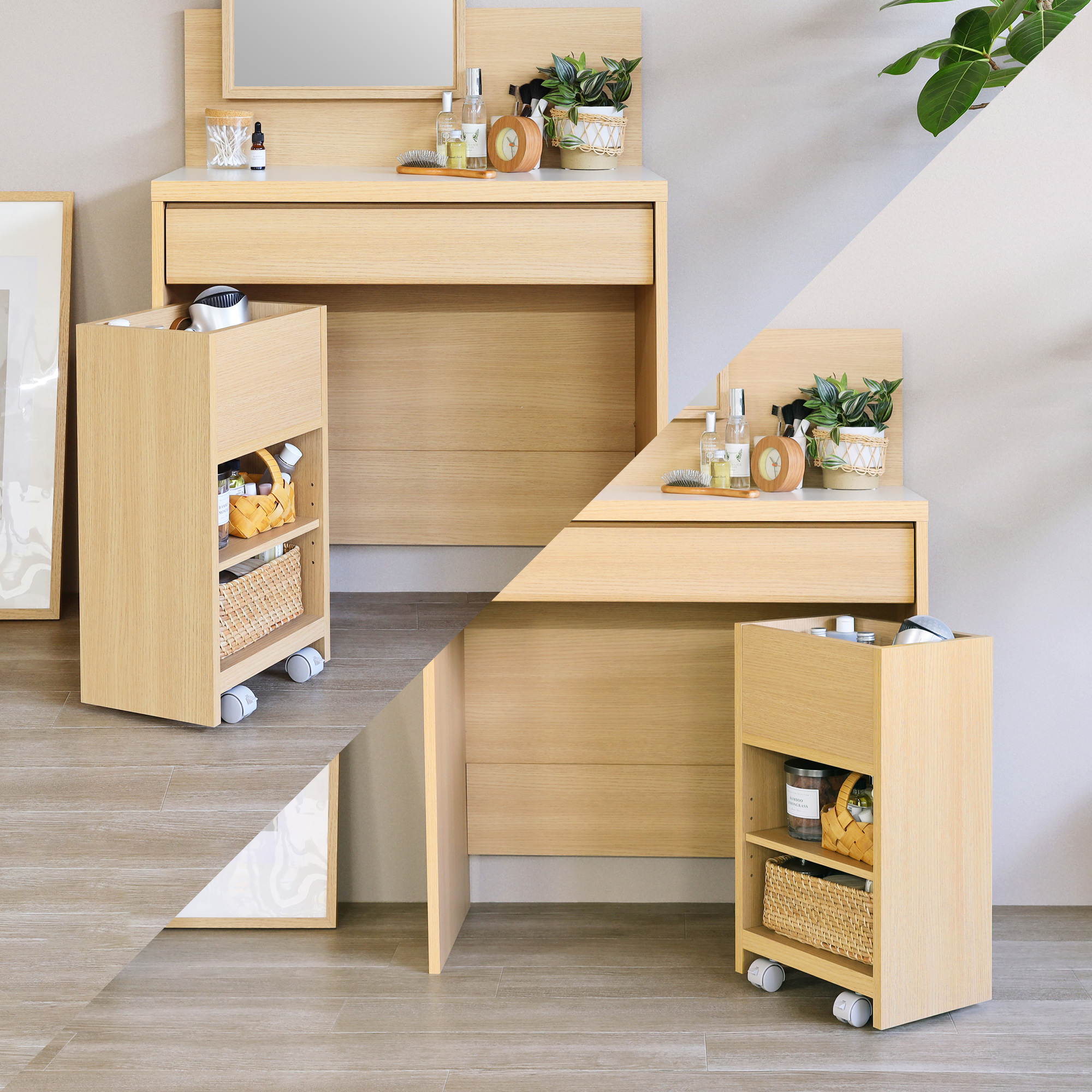サイドワゴン ドレッサー用キャスター付きコスメ収納 ナチュラル