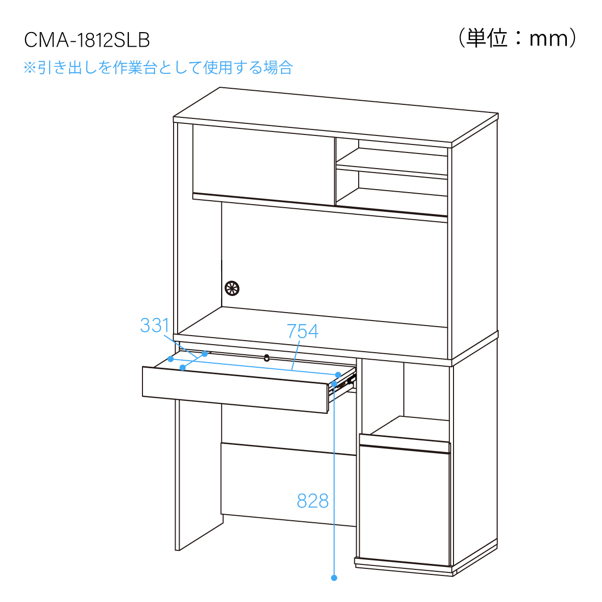 | 素材 | 【本体素材】中天板、引出底板(作業台):合成樹脂化粧繊維板(メラミン)、他:プリント紙化粧繊維板【表面素材】プリント紙化粧繊維板 |