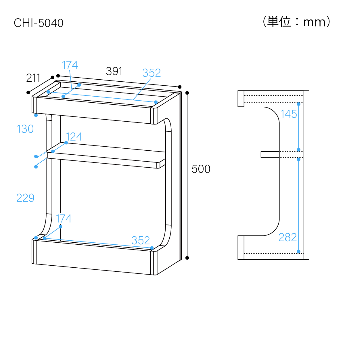 | 耐荷重 | 【天板】5kg【中棚】2kg |