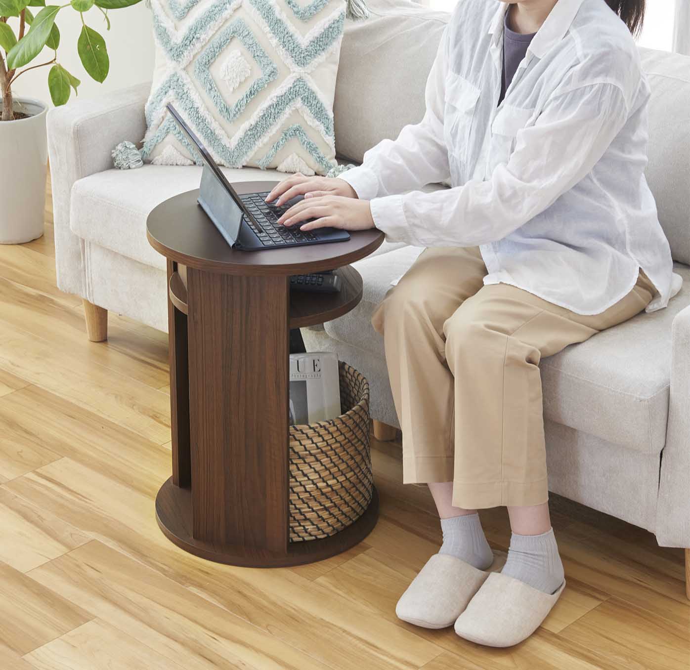 サイドテーブル 丸形 中棚付きメラミン天板 ダークブラウン