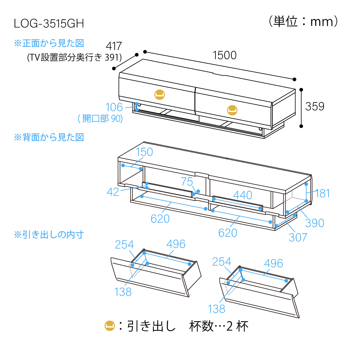 | サイズ | 幅150.0 × 奥行41.7 × 高さ35.9(cm) |
