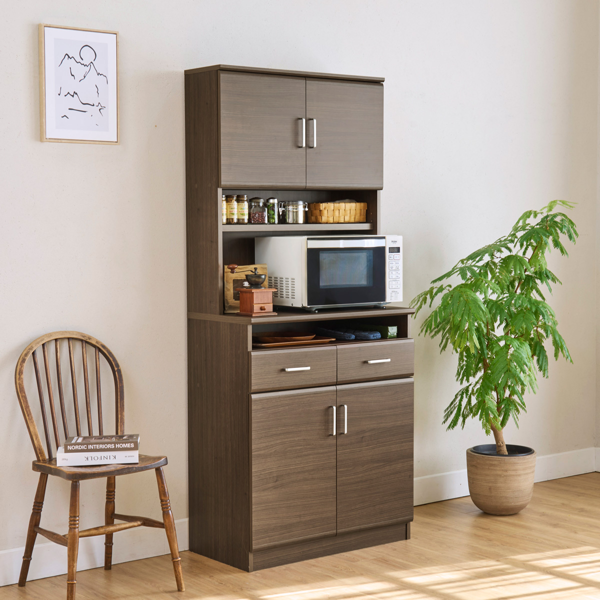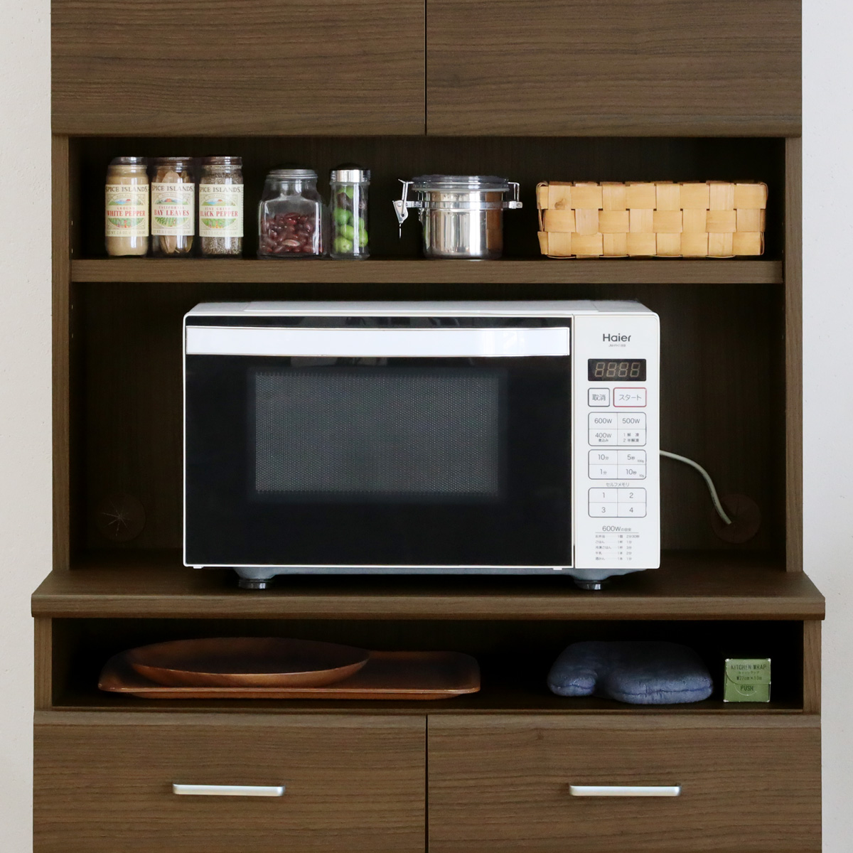 豊富な収納スペースで、家電や食器、キッチン用品をまとめて収納できるレンジ台です。