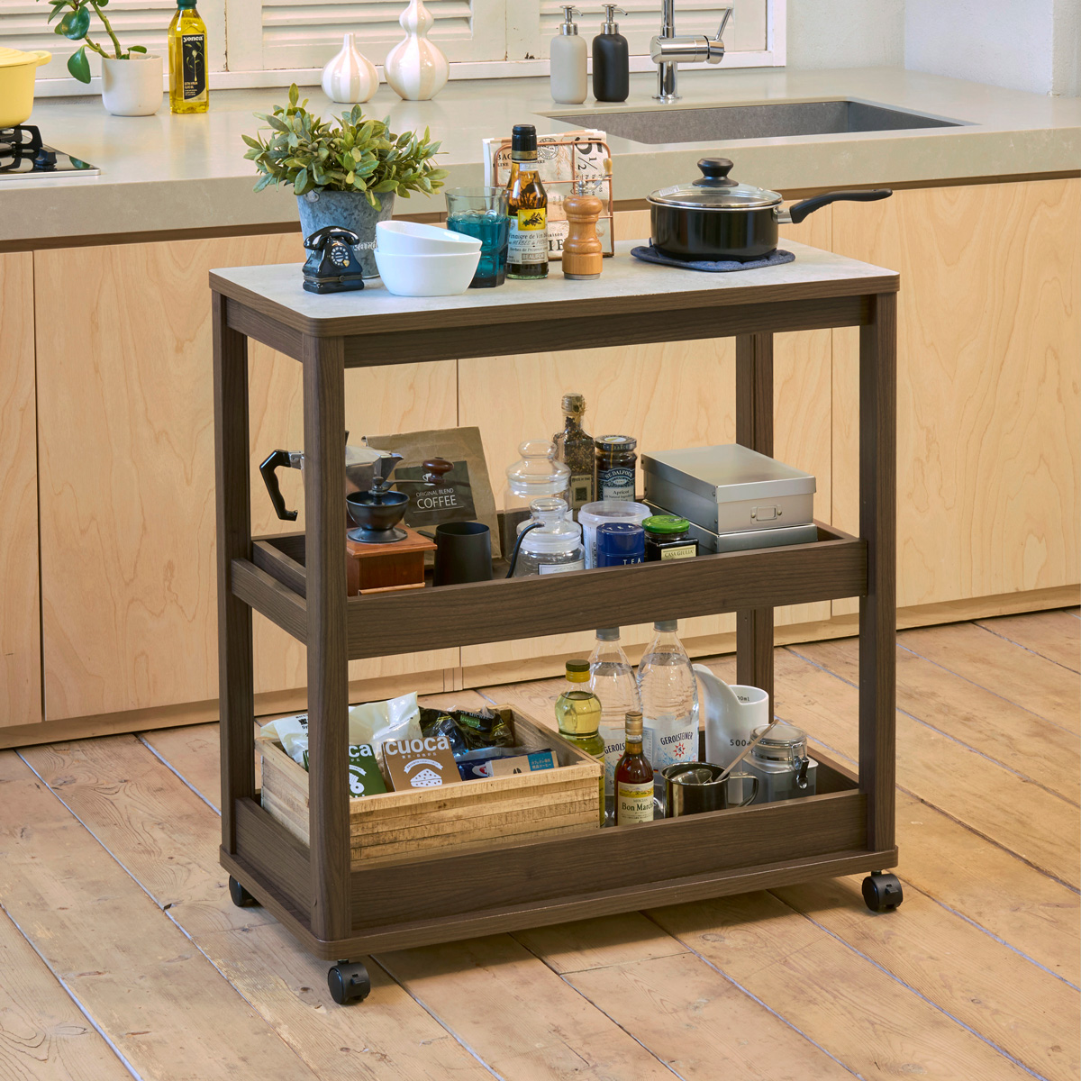 キャスター付き石目調メラミン天板のキッチンワゴン